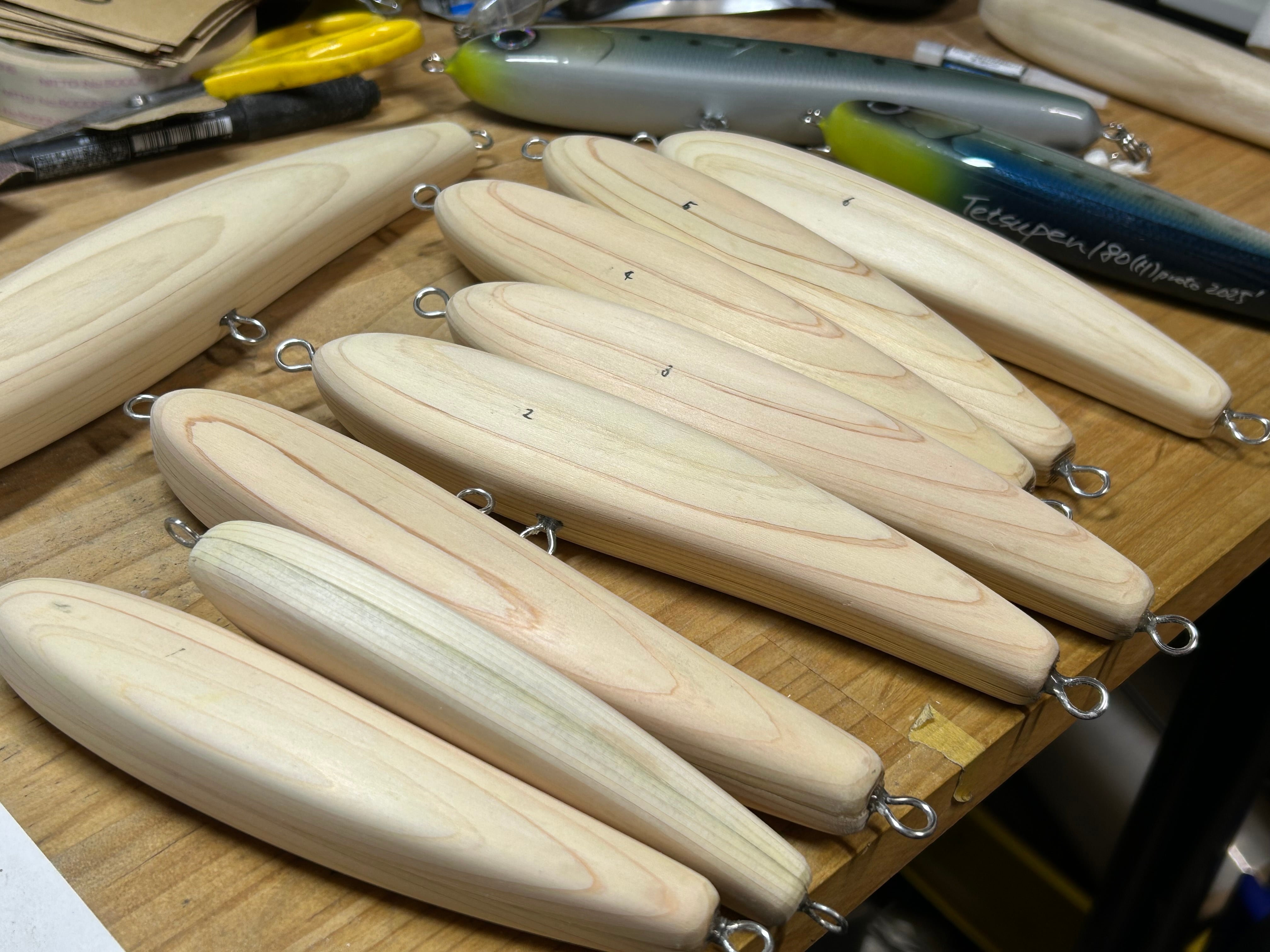 *WEBショップ限定モデル* *1/4以降の出荷となります テツペン150 タイプ:フローティング 重量:60g前後 材質:桧 1.4mm硬質ステンレスワイヤースリーブ止め仕様 推奨フック(シングル):3g前後 推奨フック(トレブル):1-1/0 スタンダードなダイビングペンシル。 飛距離、強度、アクション等拘って製作しています。 *天然素材及びハンドメイド品につき多少の誤差等ありますがご容赦下さい。 使用後は水洗い後、直射日光や高温多湿の場所は避けて保管してください。 破損した場合は真水で洗い乾燥後、接着剤やUVレジン等で補修、防水処理を行う事をお勧めします。 釣り以外の目的では使用しないで下さい。