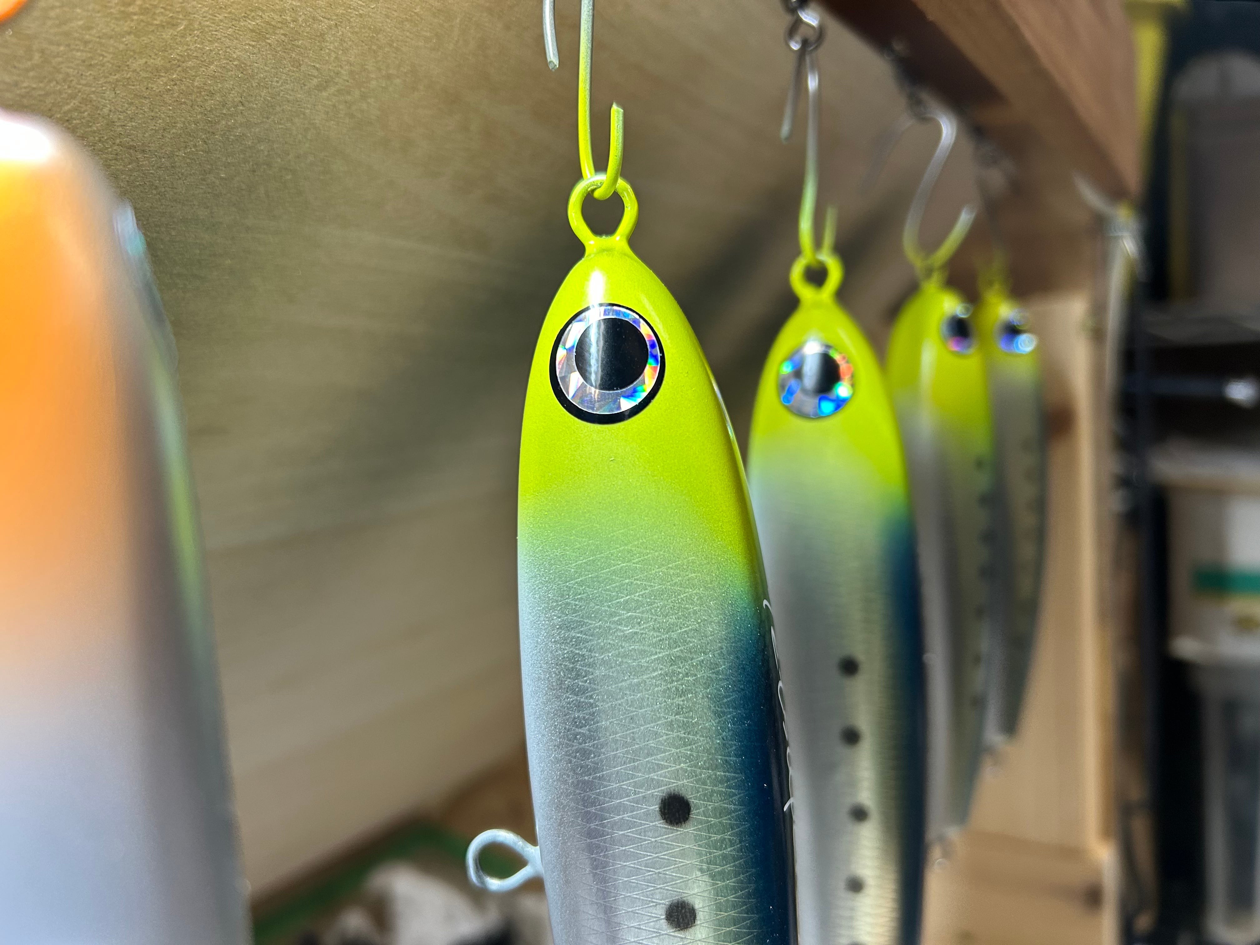 テツペン210 タイプ:フローティング 重量:105g前後 材質:桧 1.6mm硬質ステンレスワイヤースリーブ止め仕様 推奨フック(シングル):7g前後 推奨フック(トレブル):太軸3/0 スタンダードなダイビングペンシル。 飛距離、強度、アクション等拘って製作しています。 *天然素材及びハンドメイド品につき多少の誤差等ありますがご容赦下さい。 使用後は水洗い後、直射日光や高温多湿の場所は避けて保管してください。 破損した場合は真水で洗い乾燥後、接着剤やUVレジン等で補修、防水処理を行う事をお勧めします。 釣り以外の目的では使用しないで下さい。